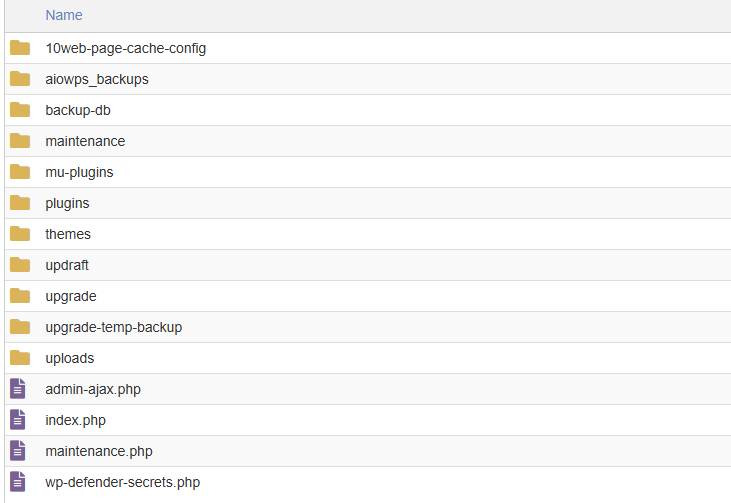 I replace all files except the wp-content folder. There might be hacker code in this folder. Once I open this folder on my computer. I found several files & folders there.